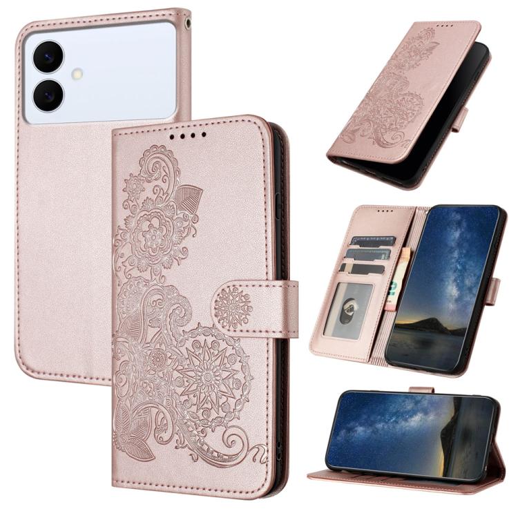 For Samsung Galaxy S26 Edge 5G Datura Flower Embossed Flip Leather Phone Case(Rose Gold)