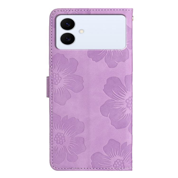 For Samsung Galaxy S26 Edge 5G Flower Embossing Pattern Leather Phone Case(Purple)