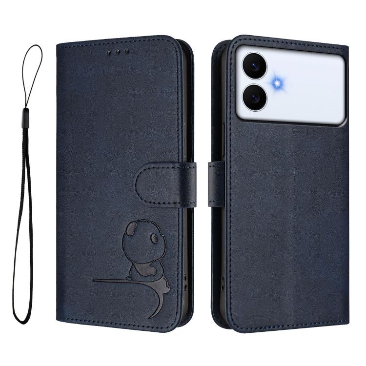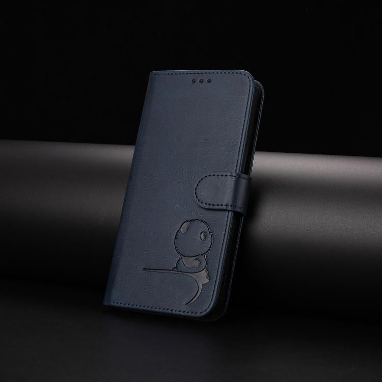 For Samsung Galaxy S26 Edge 5G Litter Panda Embossing RFID Leather Phone Case with Lanyard(Blue)