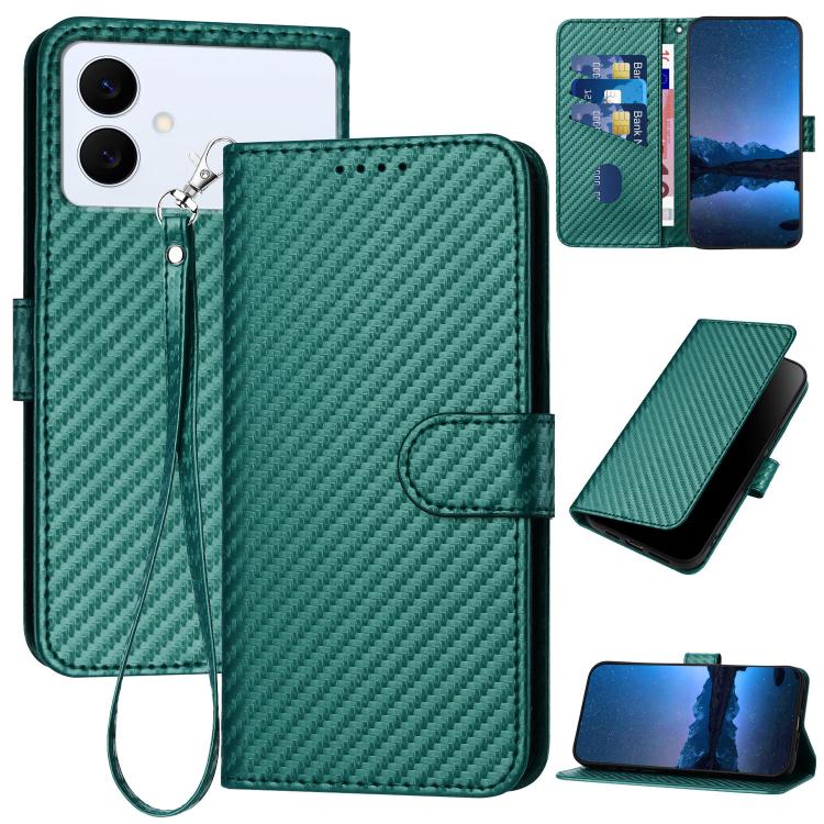 For Samsung Galaxy S26 Edge 5G YX0070 Carbon Fiber Buckle Leather Phone Case with Lanyard(Dark Green)