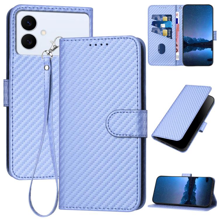 For Samsung Galaxy S26 Edge 5G YX0070 Carbon Fiber Buckle Leather Phone Case with Lanyard(Light Purple)