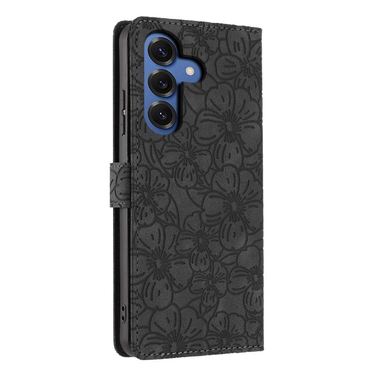 For Samsung Galaxy S26 Pro 5G Cherry Blossoms Embossed Leather Phone Case(Black)
