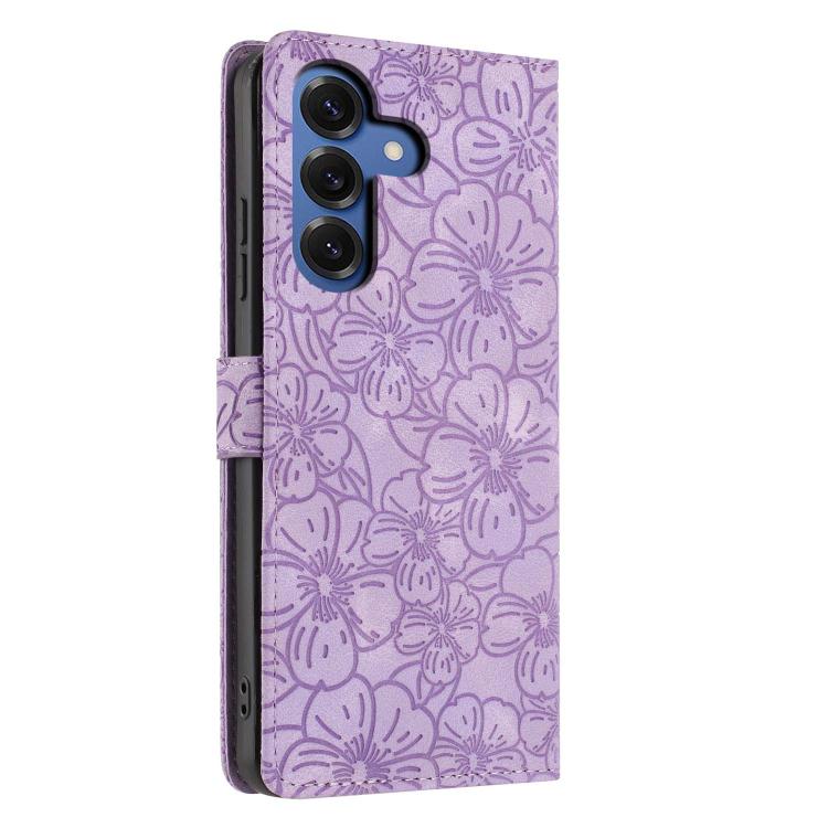 For Samsung Galaxy S26 Pro 5G Cherry Blossoms Embossed Leather Phone Case(Purple)