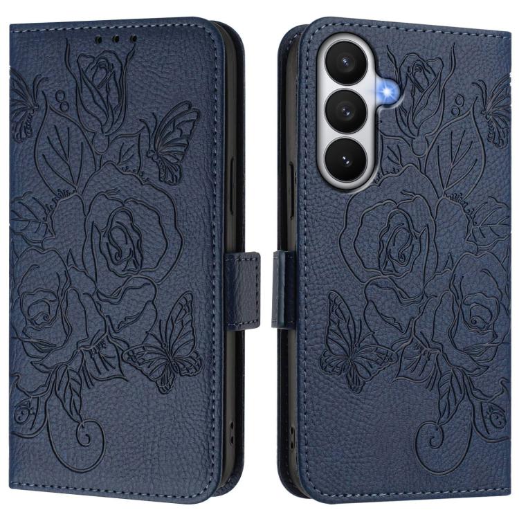 For Samsung Galaxy S26 Pro 5G Embossed Rose RFID Anti-theft Leather Phone Case(Dark Blue)