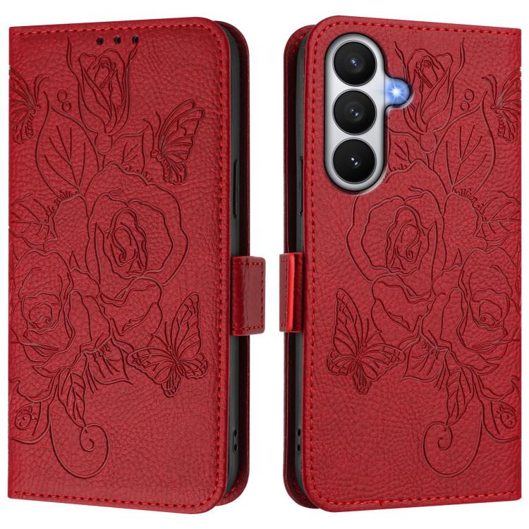 For Samsung Galaxy S26 Pro 5G Embossed Rose RFID Anti-theft Leather Phone Case(Red)