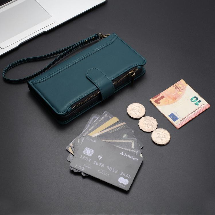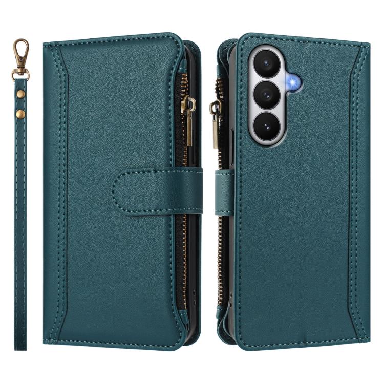 For Samsung Galaxy S26 Pro 5G Magnetic Closure 9 Card Slots Zipper Leather Case with Hand Strap(Dark Green)