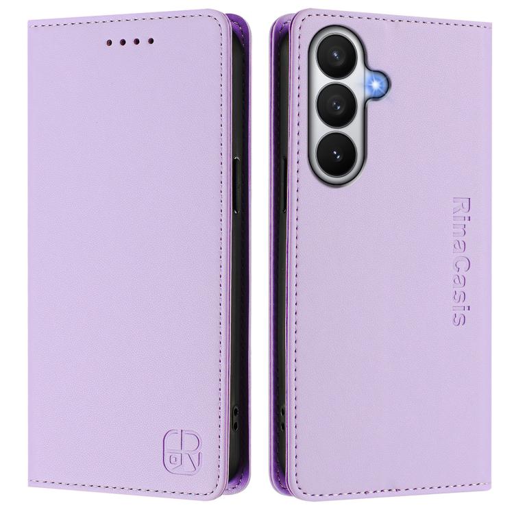 For Samsung Galaxy S26 Pro 5G RC01 Dual-Folded Magnetic Suction RFID Leather Phone Case(Light Purple)