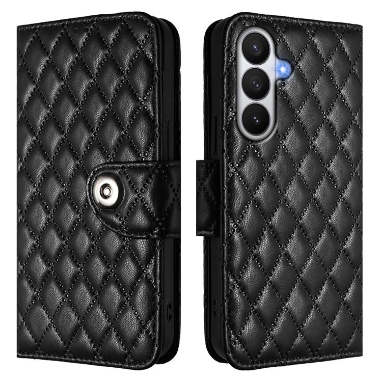 For Samsung Galaxy S26 Pro 5G Rhombic Texture Flip Leather Phone Case with Lanyard(Black)
