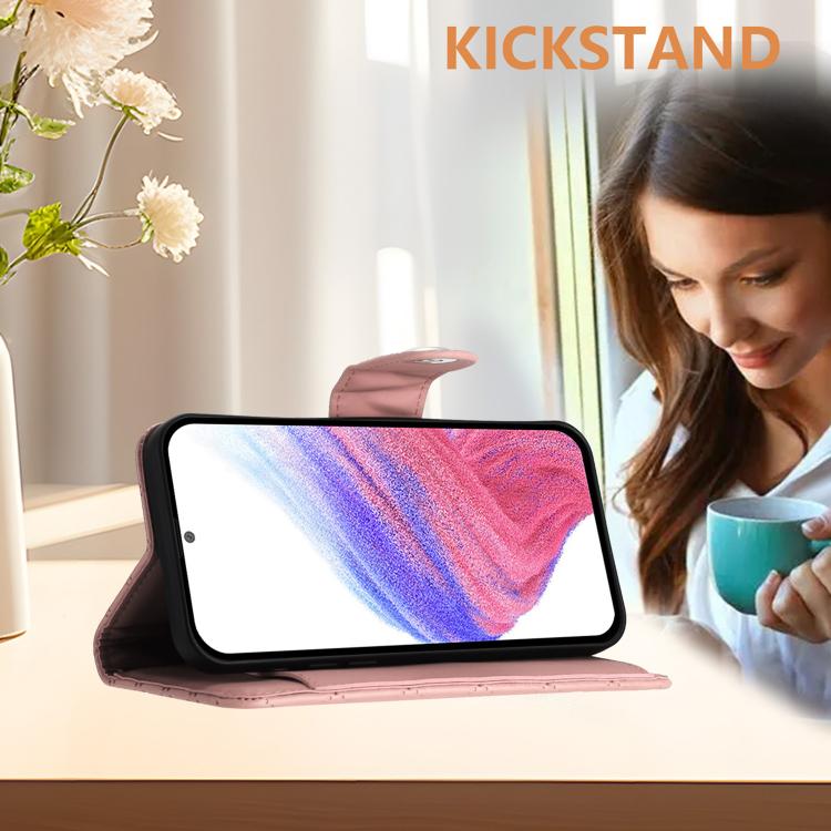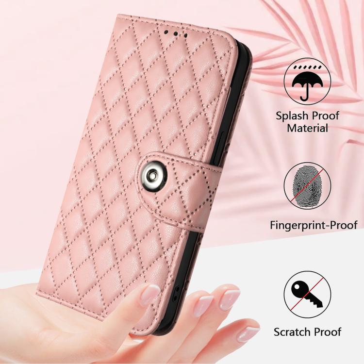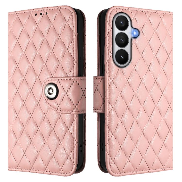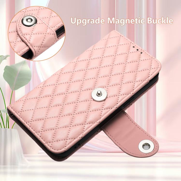 For Samsung Galaxy S26 Pro 5G Rhombic Texture Flip Leather Phone Case with Lanyard(Coral Pink)