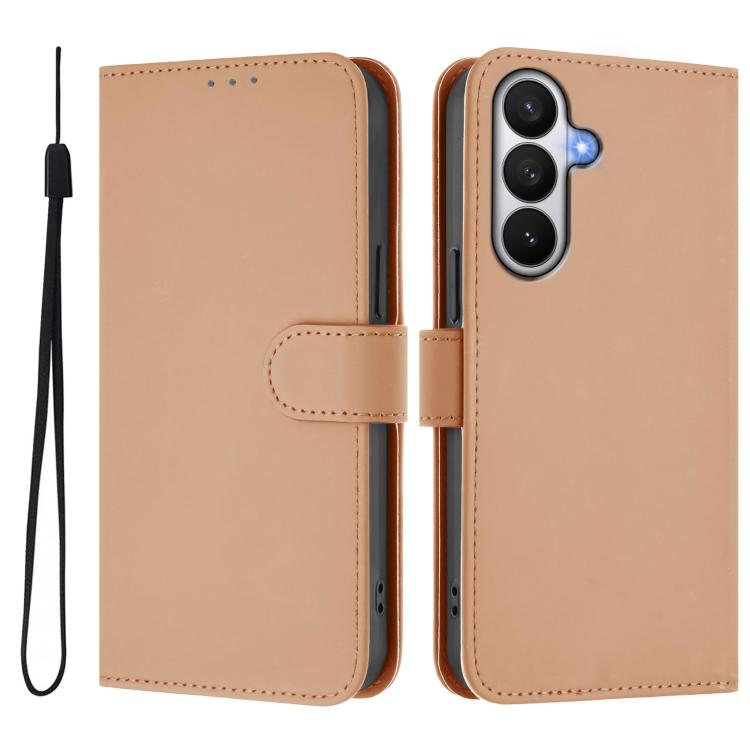 For Samsung Galaxy S26 Pro 5G Skin Feel Solid Color Leather Phone Case with Lanyard(Nude)