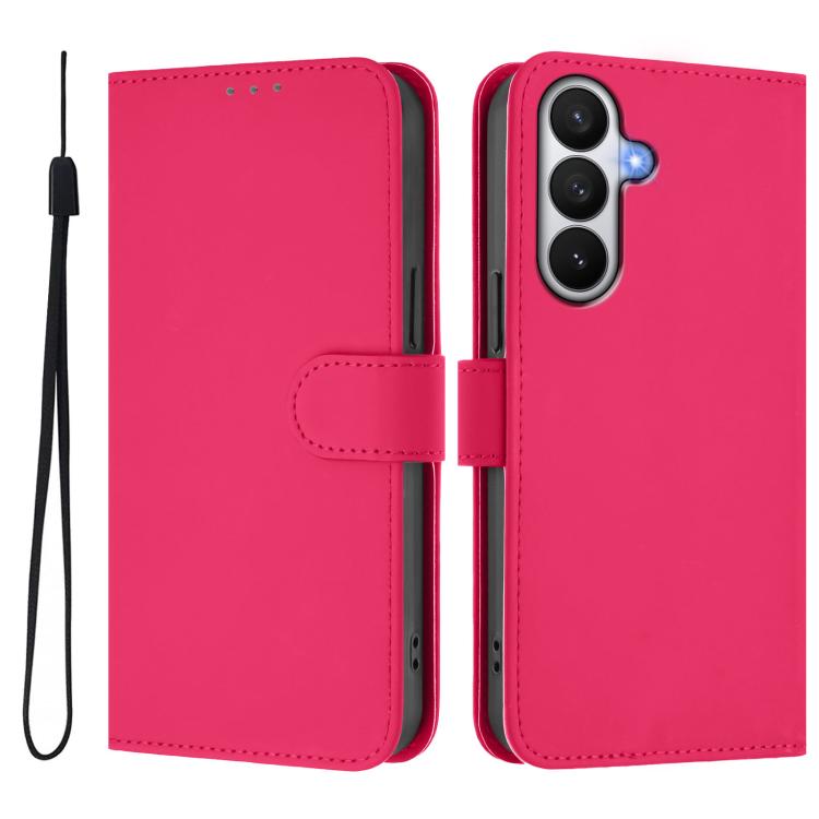 For Samsung Galaxy S26 Pro 5G Skin Feel Solid Color Leather Phone Case with Lanyard(Rose Red)