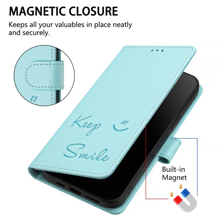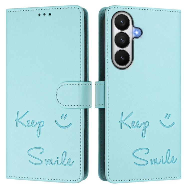 For Samsung Galaxy S26 Pro 5G Smile Embossing RFID Leather Phone Case(Mint Green)