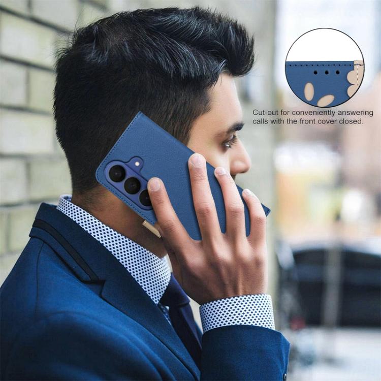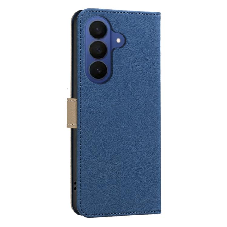 For Samsung Galaxy S26 Pro 5G Splicing Color Hollow Flower Pattern RFID Leather Phone Case(Dark Blue)