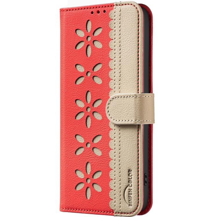 For Samsung Galaxy S26 Pro 5G Splicing Color Hollow Flower Pattern RFID Leather Phone Case(Red)