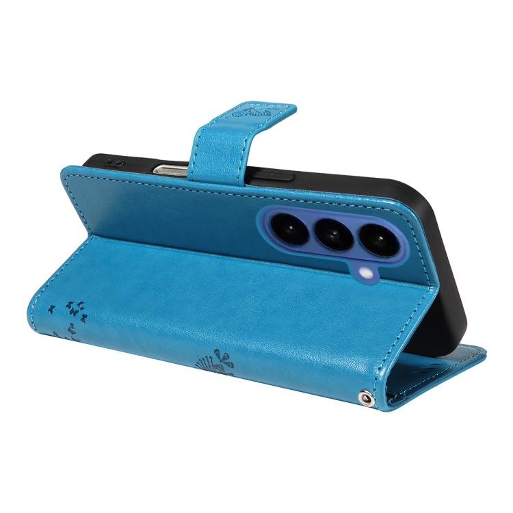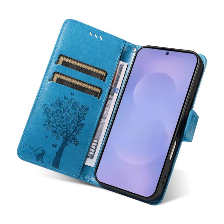 For Samsung Galaxy S26 Pro 5G Tree & Cat Embossed Pattern Flip Leather Phone Case(Blue)