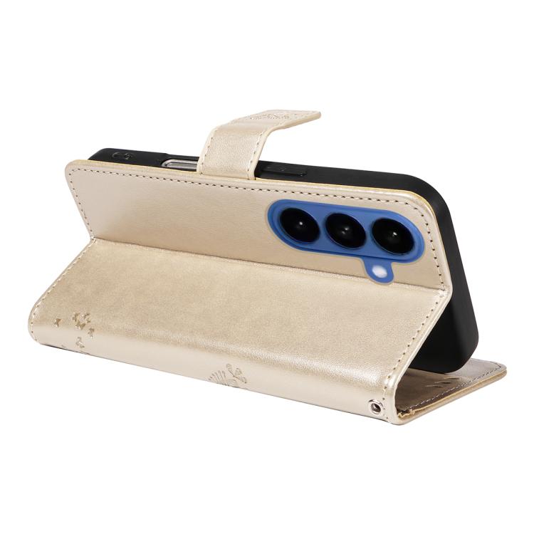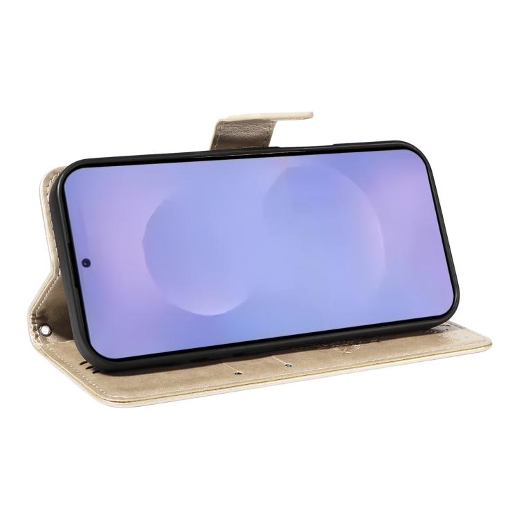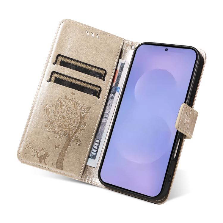 For Samsung Galaxy S26 Pro 5G Tree & Cat Embossed Pattern Flip Leather Phone Case(Gold)