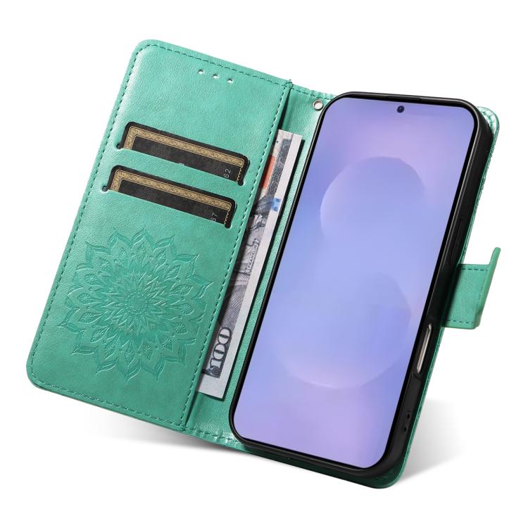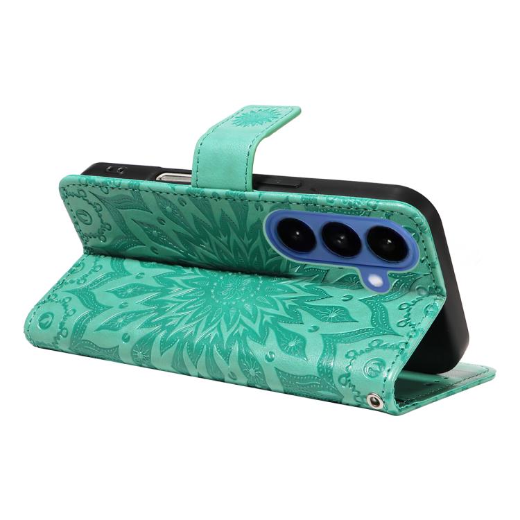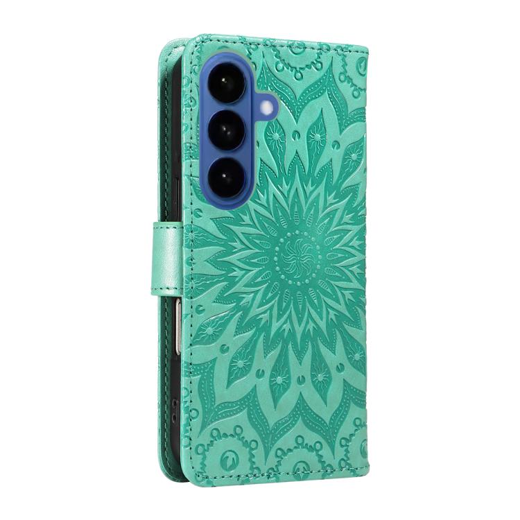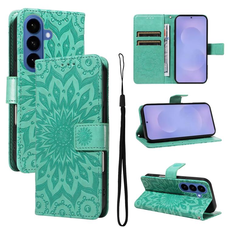 For Samsung Galaxy S26 Pro 5GB Embossed Sunflower Pattern Flip Leather Phone Case(Green)