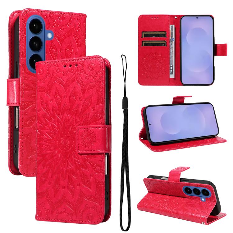 For Samsung Galaxy S26 Pro 5GB Embossed Sunflower Pattern Flip Leather Phone Case(Red)