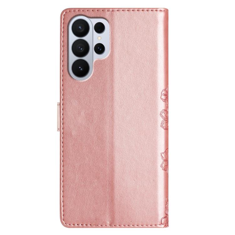 For Samsung Galaxy S26 Ultra 5G Cherry Blossom Butterfly Skin Feel Embossed PU Phone Case(Rose Gold)