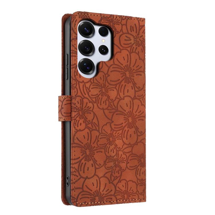 For Samsung Galaxy S26 Ultra 5G Cherry Blossoms Embossed Leather Phone Case(Brown)