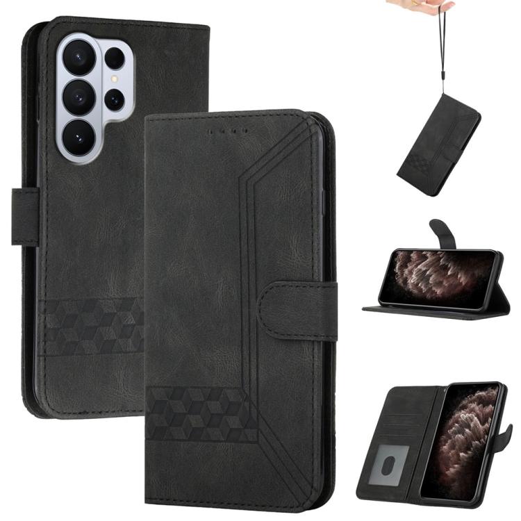 For Samsung Galaxy S26 Ultra 5G Cubic Skin Feel Flip Leather Phone Case(Black)