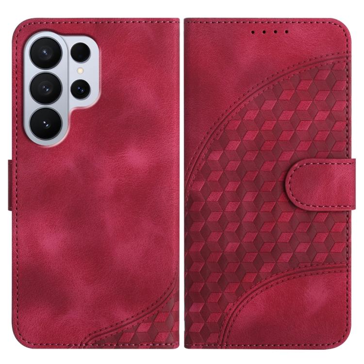 For Samsung Galaxy S26 Ultra 5G Elephant Head Embossed Phone Leather Case with Lanyard(Rose Red)
