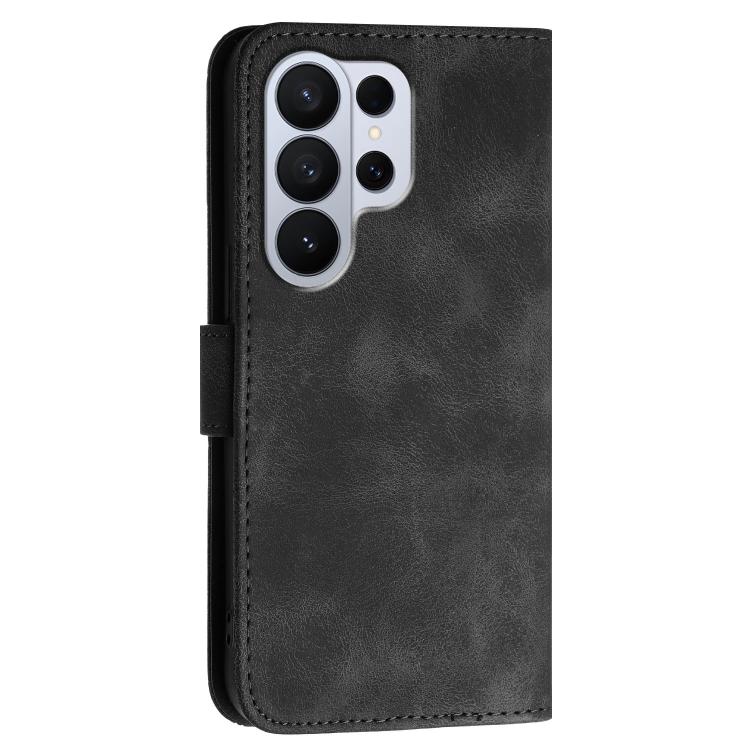 For Samsung Galaxy S26 Ultra 5G Grid Butterfly Embossed Pattern Leather Phone Case with Lanyard(Black)