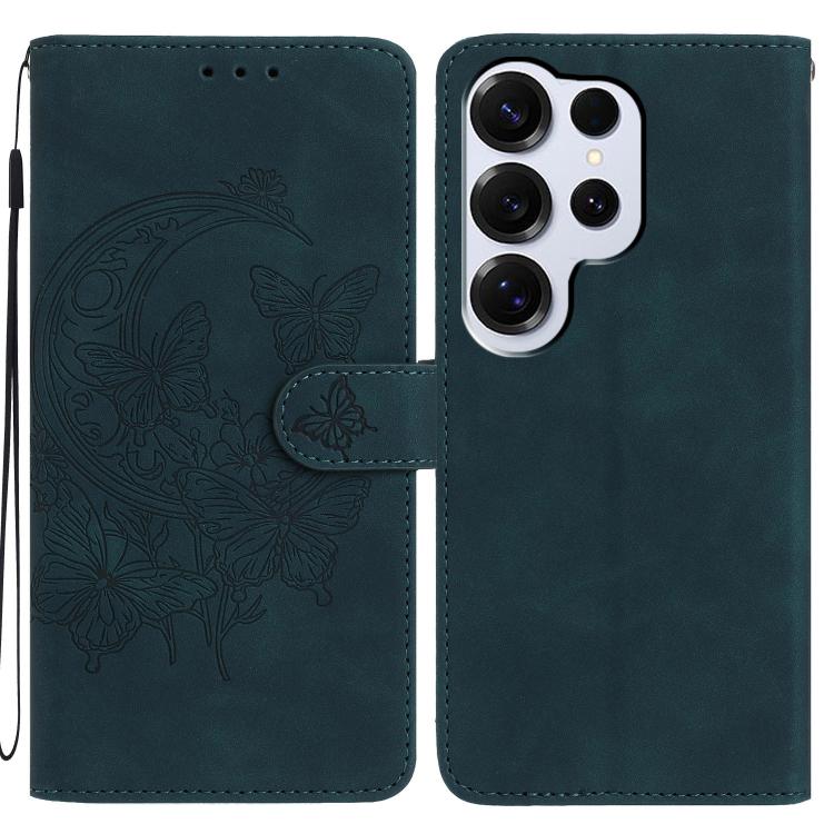 For Samsung Galaxy S26 Ultra 5G Moonlit Butterfly Dance Pattern Embossed Leather Phone Case(Green)