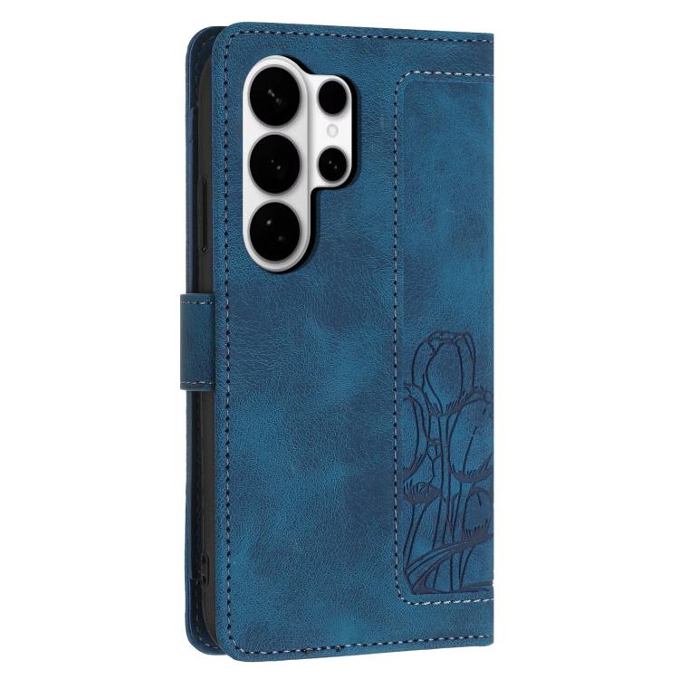 For Samsung Galaxy S26 Ultra 5G Tulips Embossed Leather Phone Case with Lanyard(Blue)