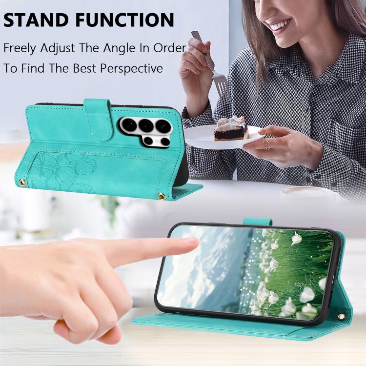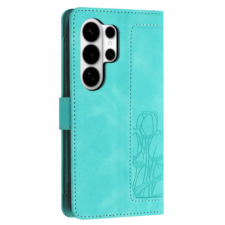For Samsung Galaxy S26 Ultra 5G Tulips Embossed Leather Phone Case with Lanyard(Green)