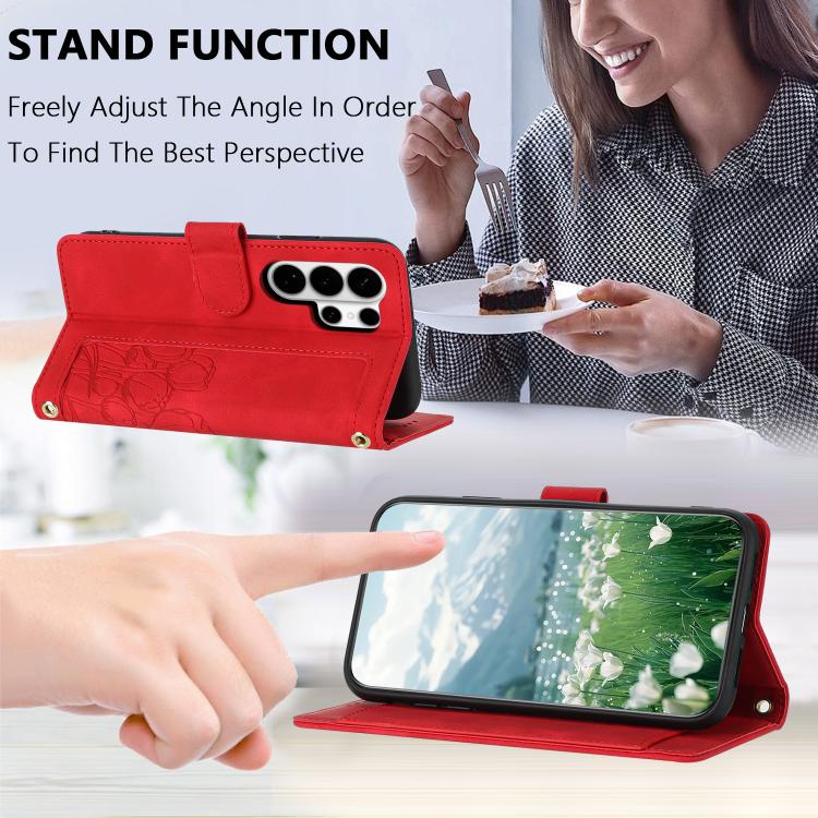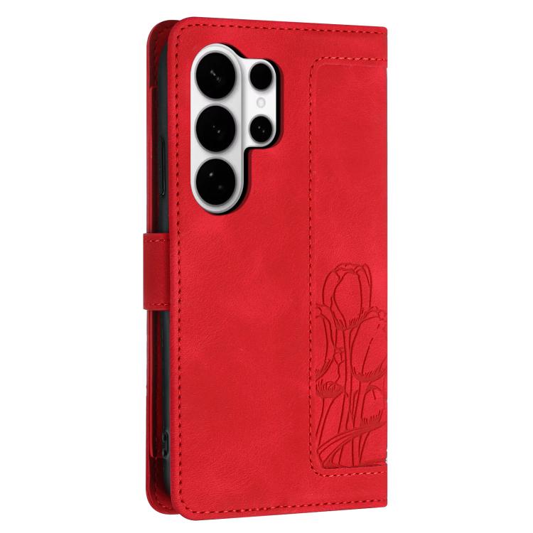 For Samsung Galaxy S26 Ultra 5G Tulips Embossed Leather Phone Case with Lanyard(Red)