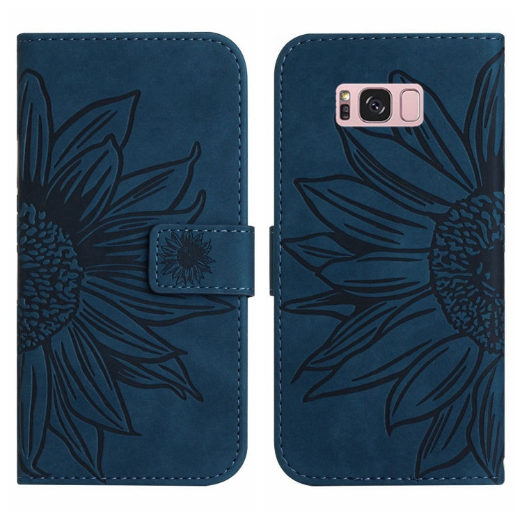 For Samsung Galaxy S8+ Skin Feel Sun Flower Pattern Flip Leather Phone Case with Lanyard(Inky Blue)