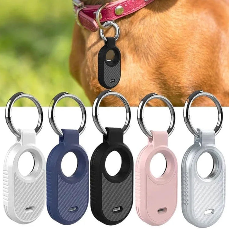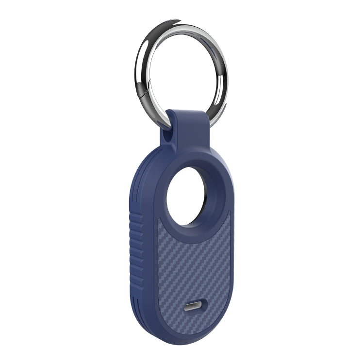 For Samsung Galaxy SmartTag 2 TPU Carbon Fiber Half Wrap Keychain Case(Deep Blue)