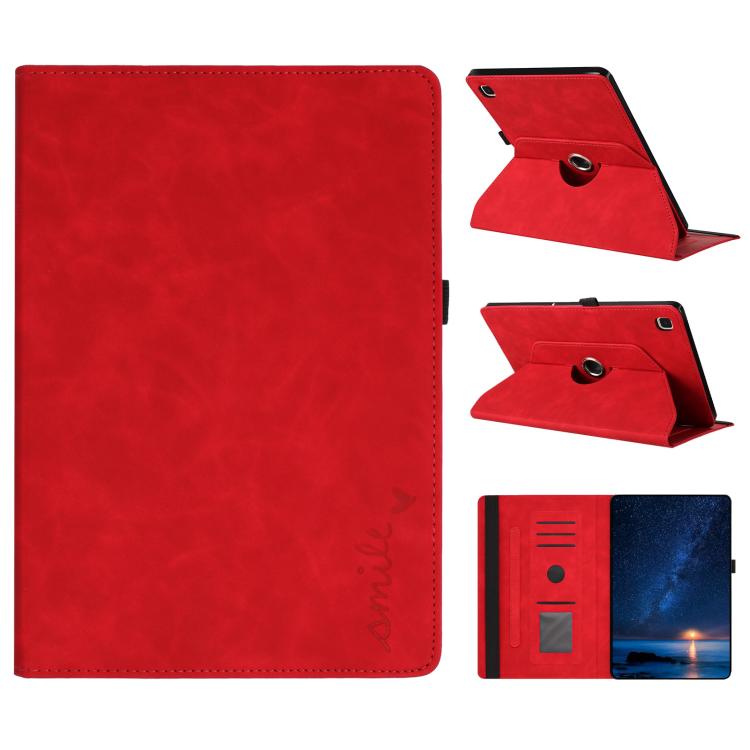 For Samsung Galaxy Tab A 10.1 2019 Smile Embossed Rotation Holder Leather Tablet Case(Red)