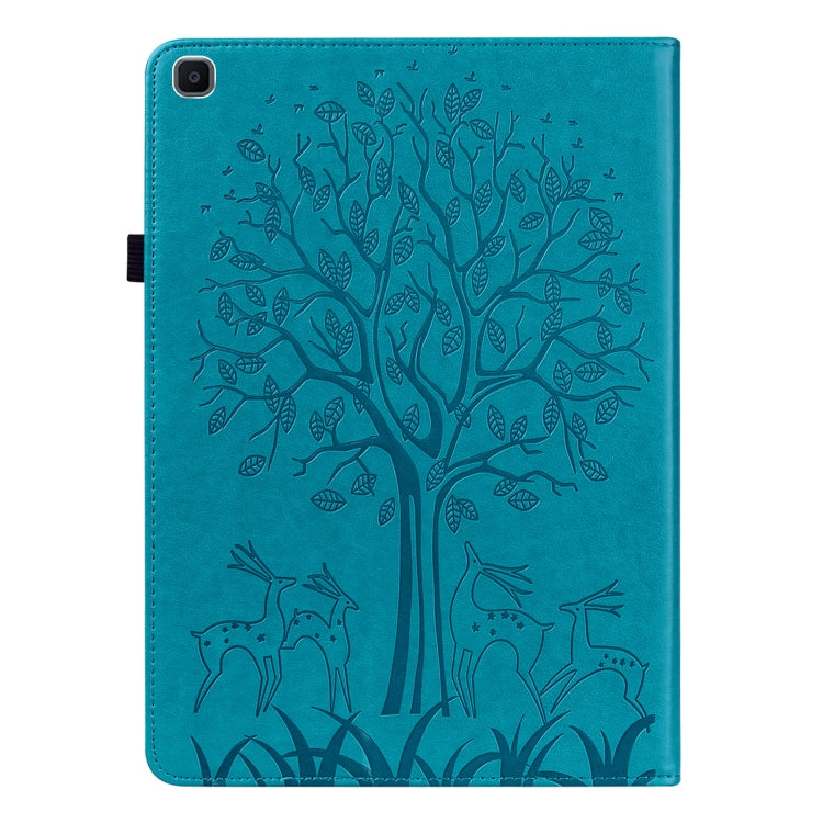 For Samsung Galaxy Tab A 8.0 2019 Tree & Deer Pattern Pressed Printing Horizontal Flip PU Leather Case with Holder & Card Slots(Blue)