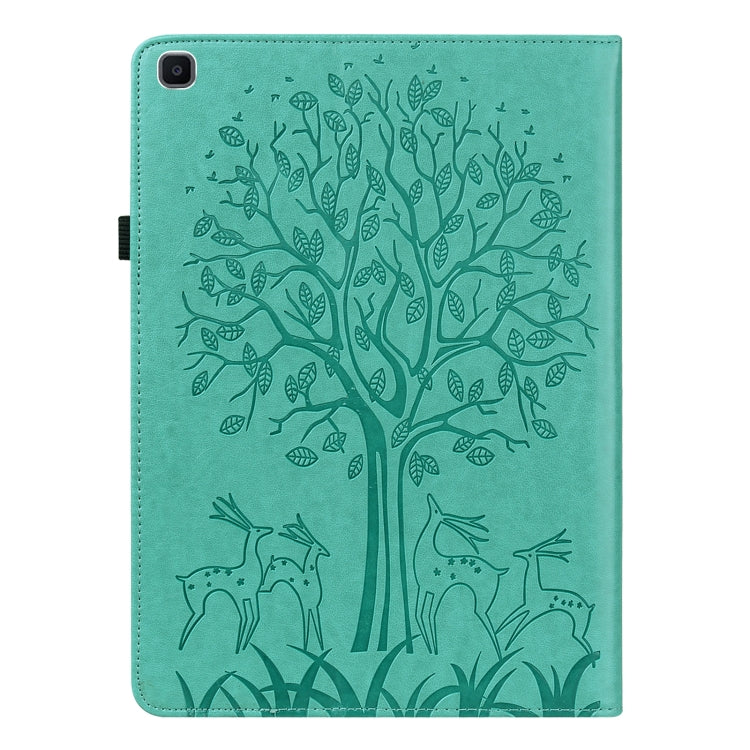 For Samsung Galaxy Tab A 8.0 2019 Tree & Deer Pattern Pressed Printing Horizontal Flip PU Leather Case with Holder & Card Slots(Green)