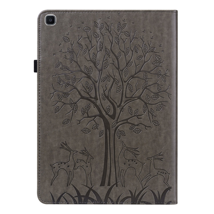 For Samsung Galaxy Tab A 8.0 2019 Tree & Deer Pattern Pressed Printing Horizontal Flip PU Leather Case with Holder & Card Slots(Grey)
