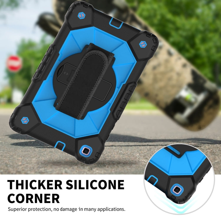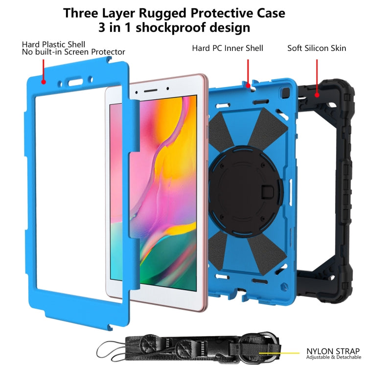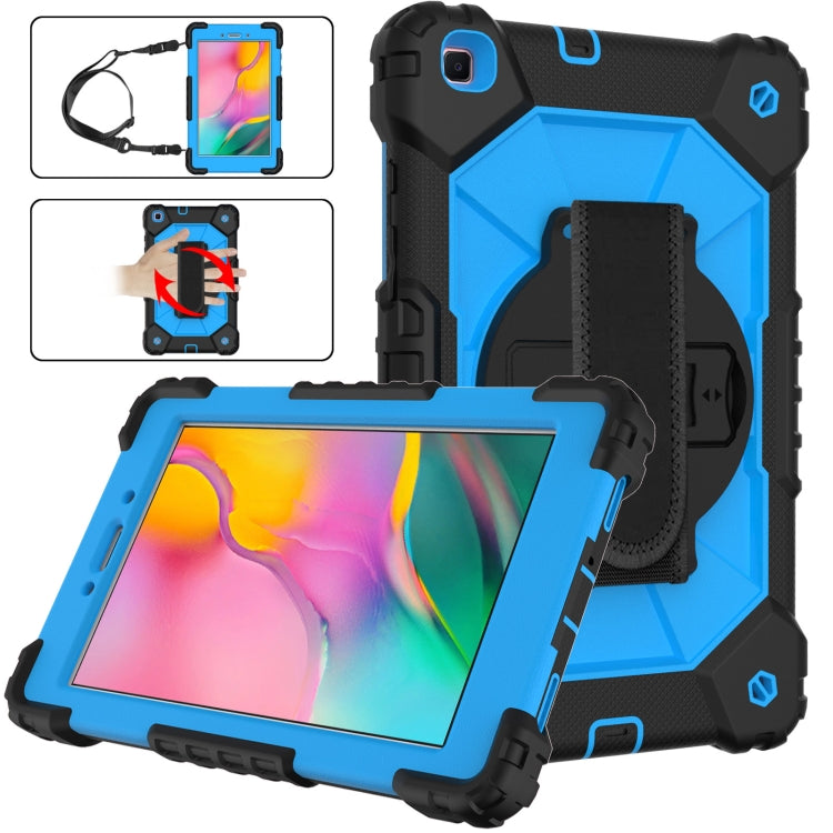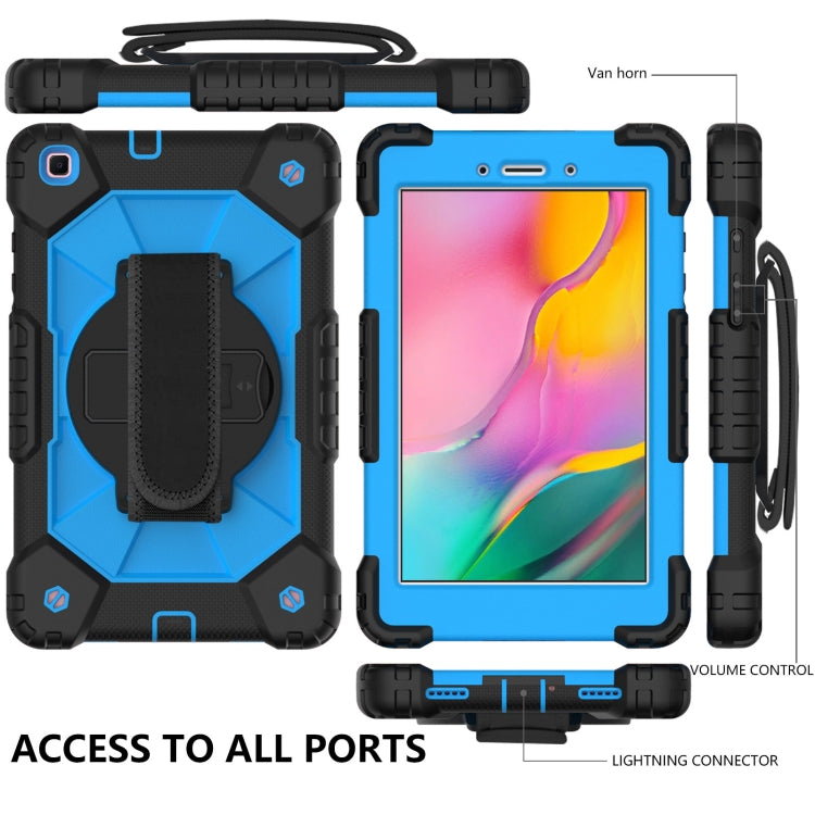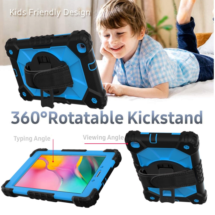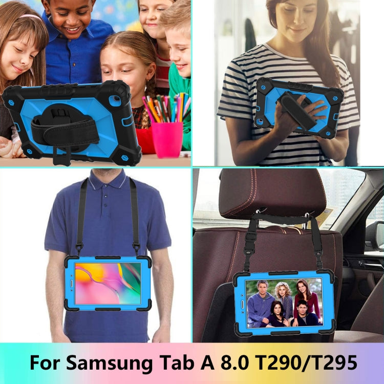 For Samsung Galaxy Tab A 8.0 (2019)T290/T295 Contrast Color Robot Shockproof Silicon + PC Protective Case with Holder & Shoulder Strap(Black+Blue)