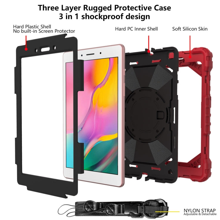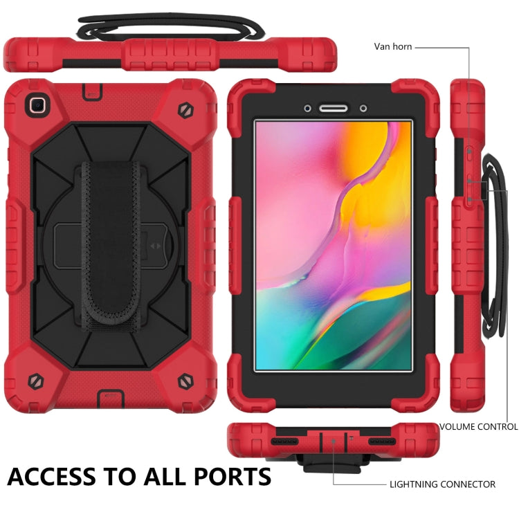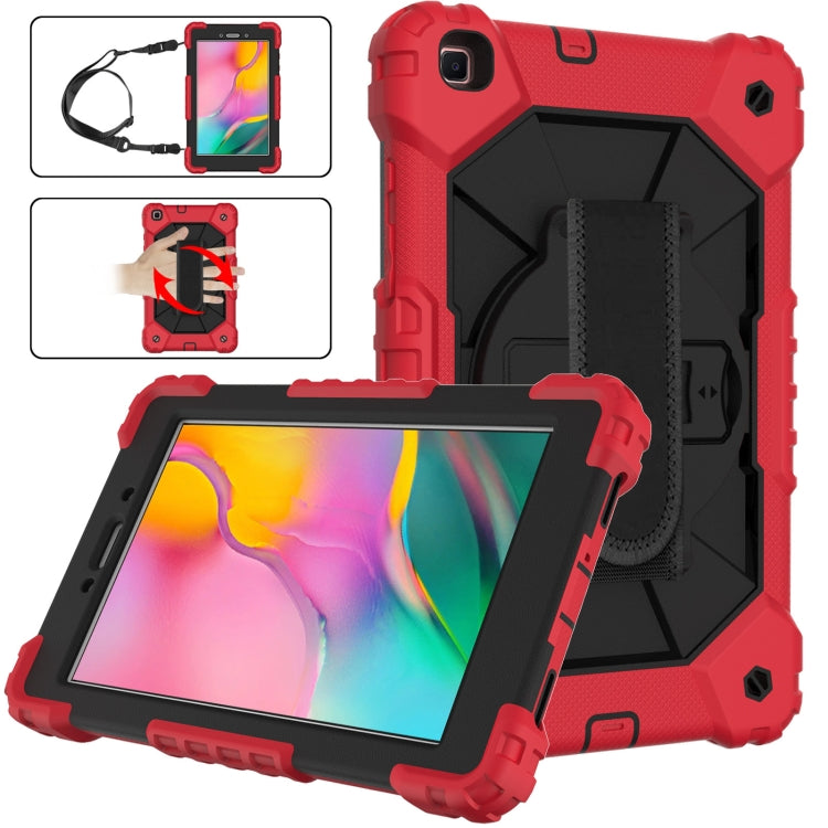 For Samsung Galaxy Tab A 8.0 (2019)T290/T295 Contrast Color Robot Shockproof Silicon + PC Protective Case with Holder & Shoulder Strap(Red+Black)