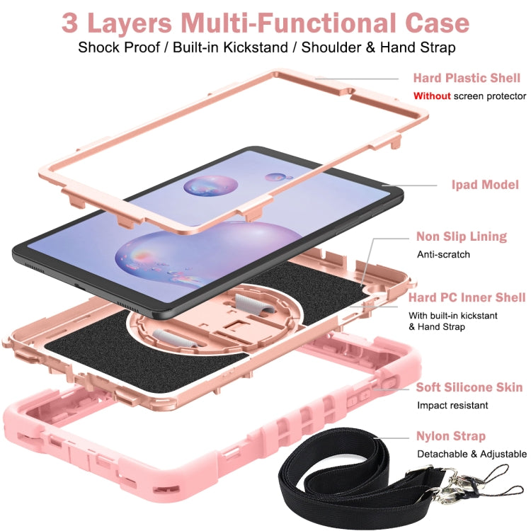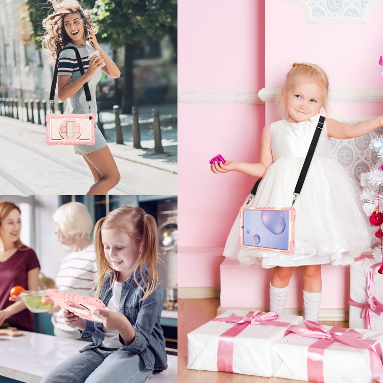 For Samsung Galaxy Tab A 8.4 2020 T307 360 Degree Rotation Contrast Color Shockproof Silicone + PC Case with Holder & Hand Grip Strap & Shoulder Strap(Rose Gold)
