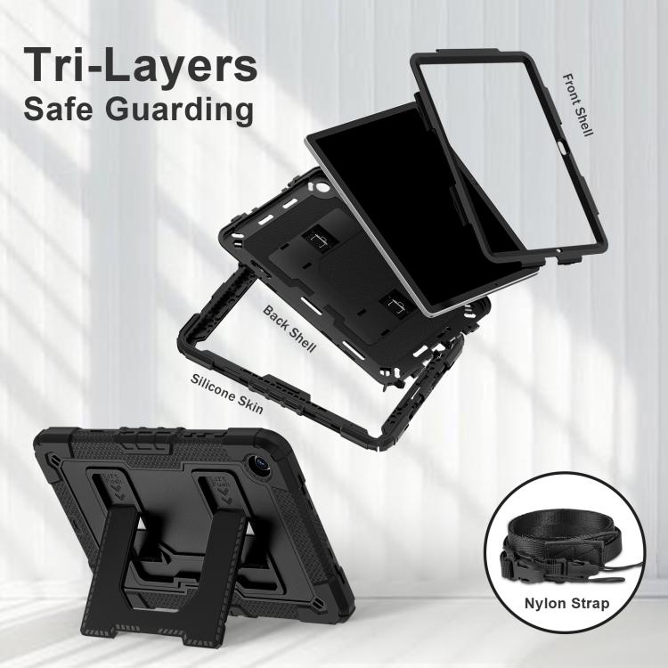 For Samsung Galaxy Tab A11+ / A9+ Big Holder Silicone Hydric PC Tablet Case with Shoulder Strap(Black)