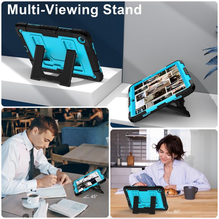 For Samsung Galaxy Tab A11+ / A9+ Big Holder Silicone Hydric PC Tablet Case with Shoulder Strap(Black Blue)