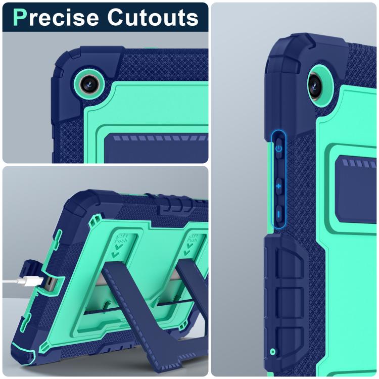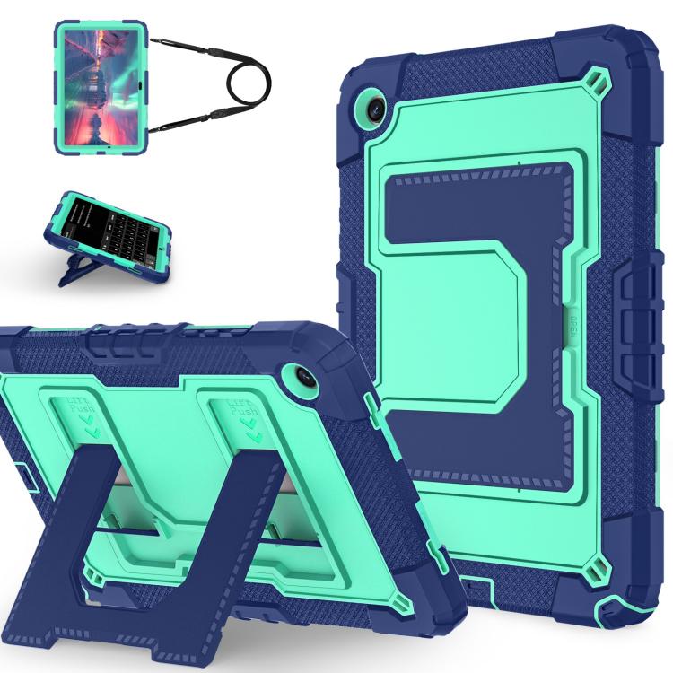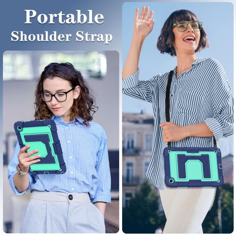 For Samsung Galaxy Tab A11+ / A9+ Big Holder Silicone Hydric PC Tablet Case with Shoulder Strap(Black Olivine)