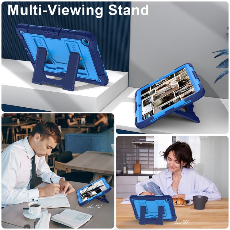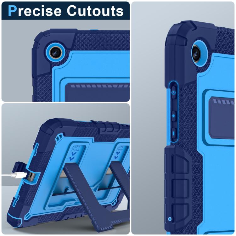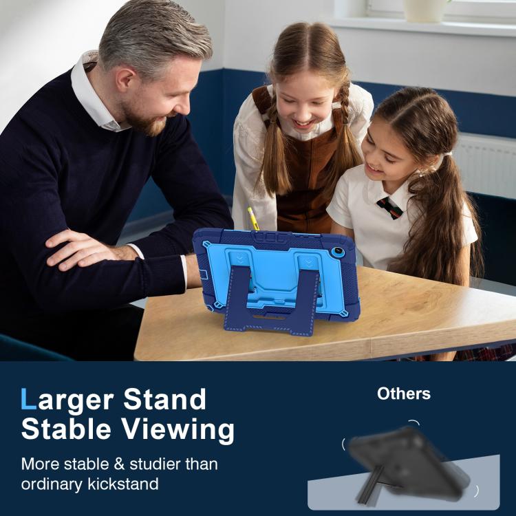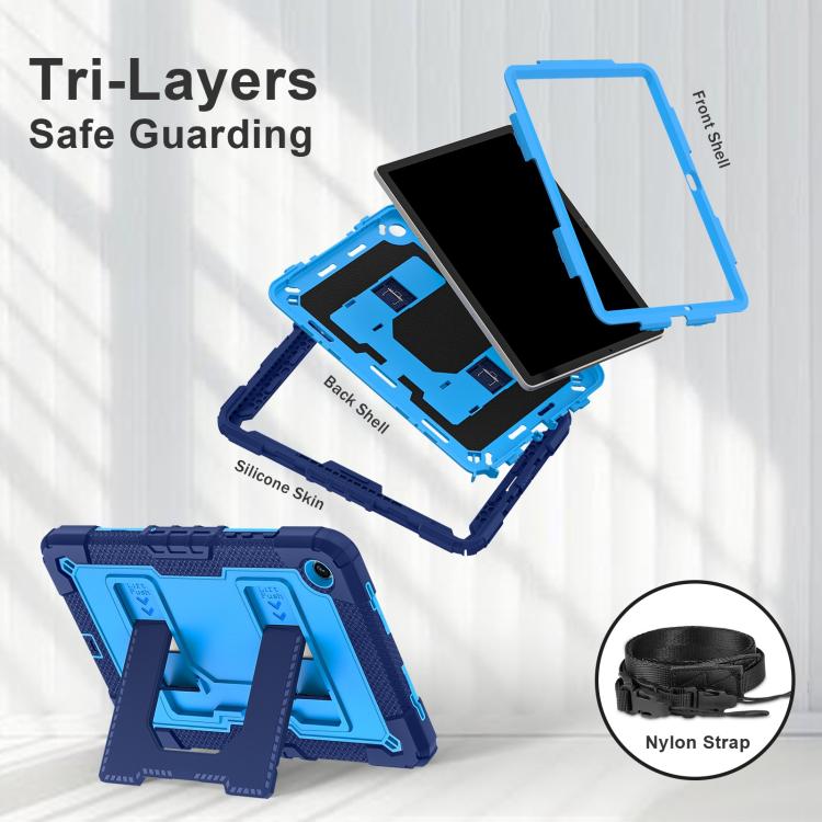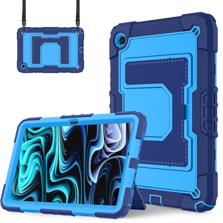 For Samsung Galaxy Tab A11+ / A9+ Big Holder Silicone Hydric PC Tablet Case with Shoulder Strap(Navy Blue Blue)