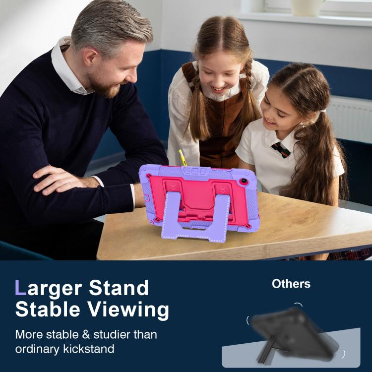 For Samsung Galaxy Tab A11+ / A9+ Big Holder Silicone Hydric PC Tablet Case with Shoulder Strap(Purple Rose Red)