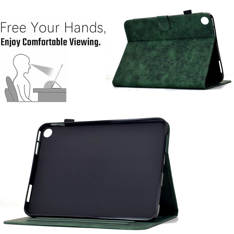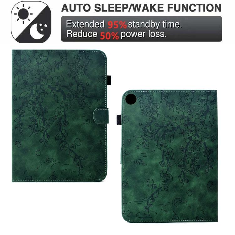 For Samsung Galaxy Tab A11+ / A9+ Plum Blossom Embossed Smart Leather Tablet Case(Green)