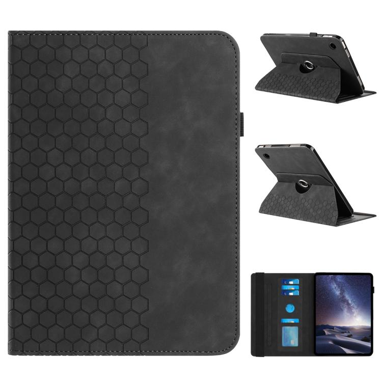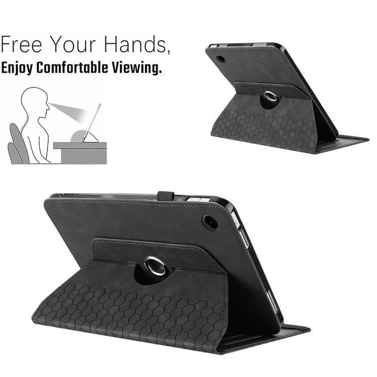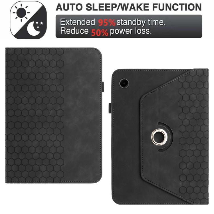 For Samsung Galaxy Tab A11 / A9 Rotatable Honeycomb Embossed Smart Leather Tablet Case(Black)