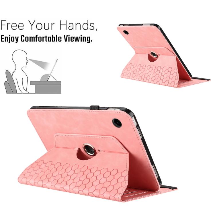 For Samsung Galaxy Tab A11 / A9 Rotatable Honeycomb Embossed Smart Leather Tablet Case(Pink)