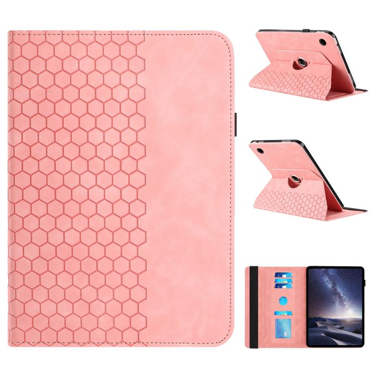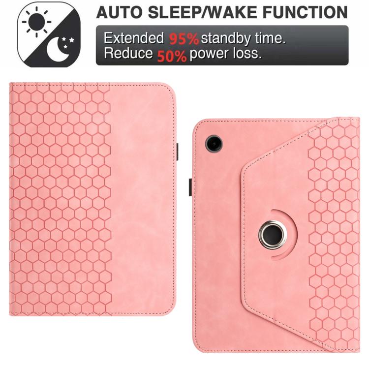 For Samsung Galaxy Tab A11+ / A9+ Rotatable Honeycomb Embossed Smart Leather Tablet Case(Pink)