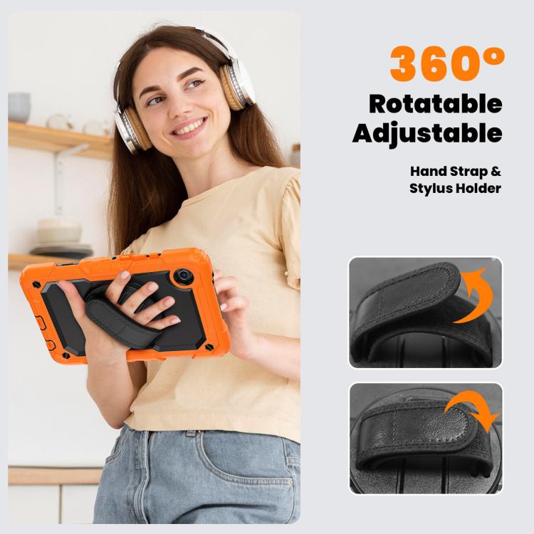 For Samsung Galaxy Tab A11 / A9 Silicone Hybrid PC Tablet Case with Shoulder Strap(Orange)